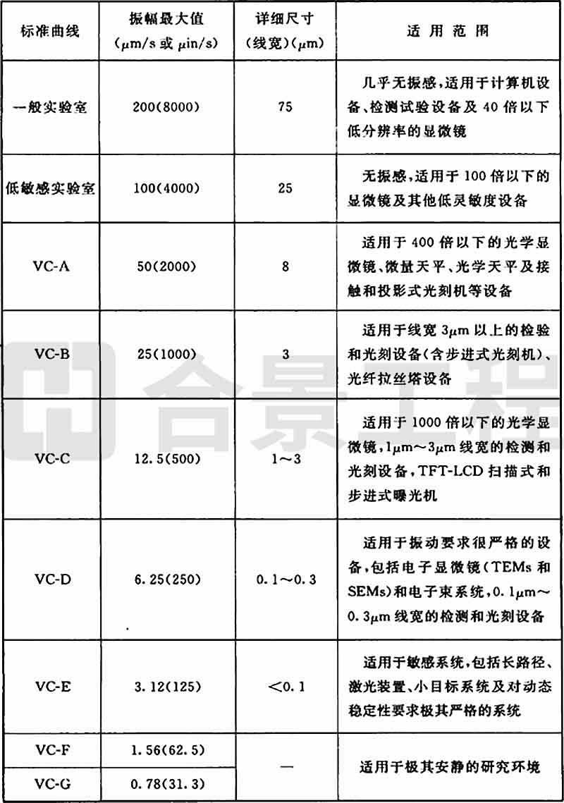 A.0.2 精密設(shè)備、儀器容許振動標(biāo)準(zhǔn)曲線的應(yīng)用應(yīng)符合表A.0.2的要求。